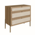 This three-drawer dresser is a fresh addition to your bedroom. Clean design lines combined with woven synthetic rattan drawer fronts give a light, textural look with fresh organic allure. Accented by beautiful drawer pulls and solid wood legs, this dresser embodies casual elegance. The natural and organic palette blends in seamlessly with any color scheme or style, becoming a perfect addition to your house.