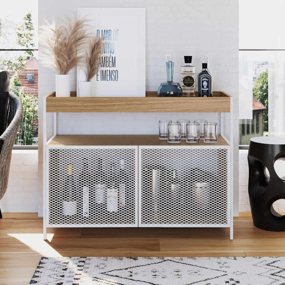 Store all your favorite glassware, linens, silverware and bar essentials in one place with this sideboard, so everything drink-related can be well organized and easy to find. Plus, we love that the spacious surface is ideal for setting down appetizer plates and serving trays. You can use this sideboard as a buffet or coffee station. It’s made from wood in a neutral finish and metallic frame and mesh doors for the perfect amount of modern style in your dining room or living room.