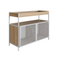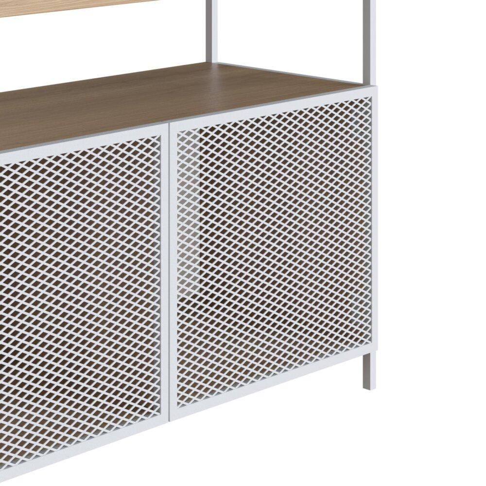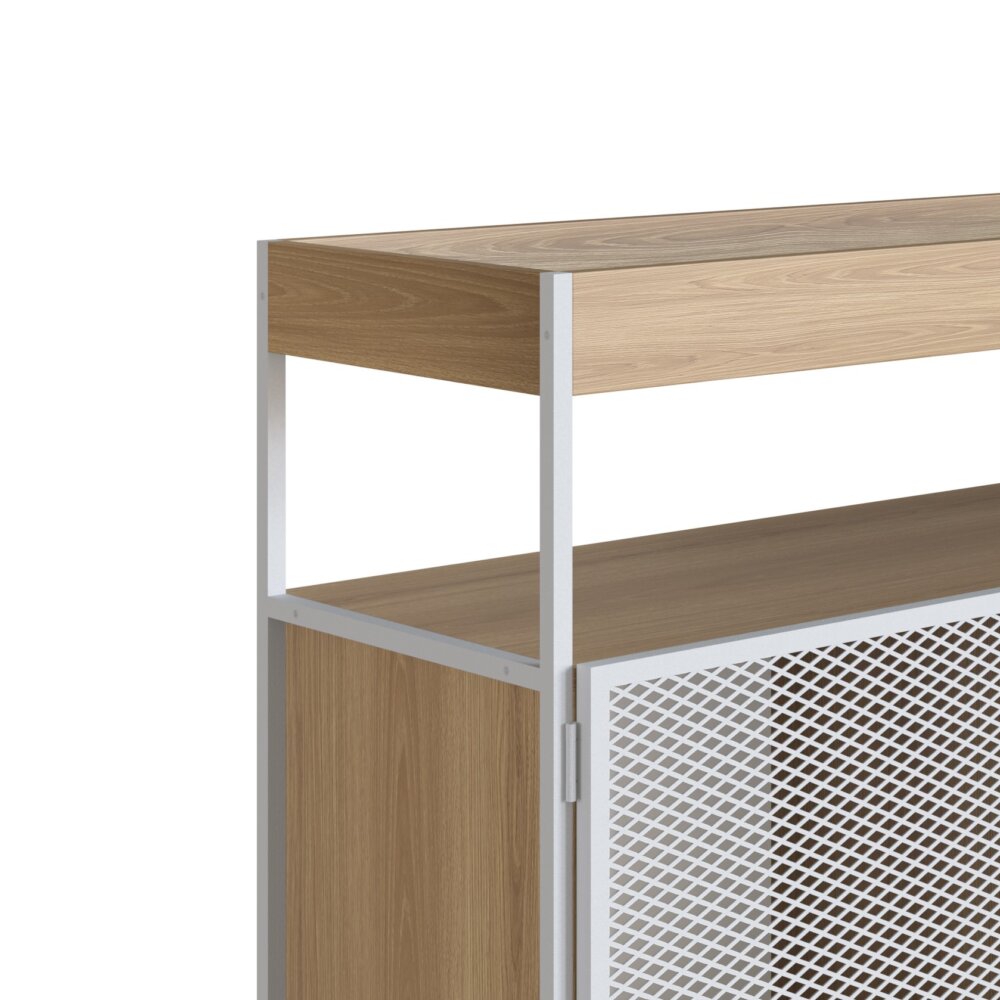Sideboard produced in 15mm MDP, rear parts of the furniture are 3mm. Upper tray to accommodate glasses and bottles. Carbon steel doors and epoxy expanded sheet, highly resistant and durable paint.