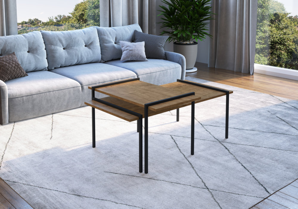 Enhance your existing decor setting by bringing in this transitional style 2-piece table set which comes with nesting design, allowing you to create your own contemporary look by stacking together to save space and give a unique look to your living room or placing separately as end tables when needed. The staggered heights are on-trend. Different kinds of combination styles can be easily achieved with this amazing coffee table set made from sturdy metal legs and a warm touch with its wooden top.