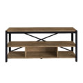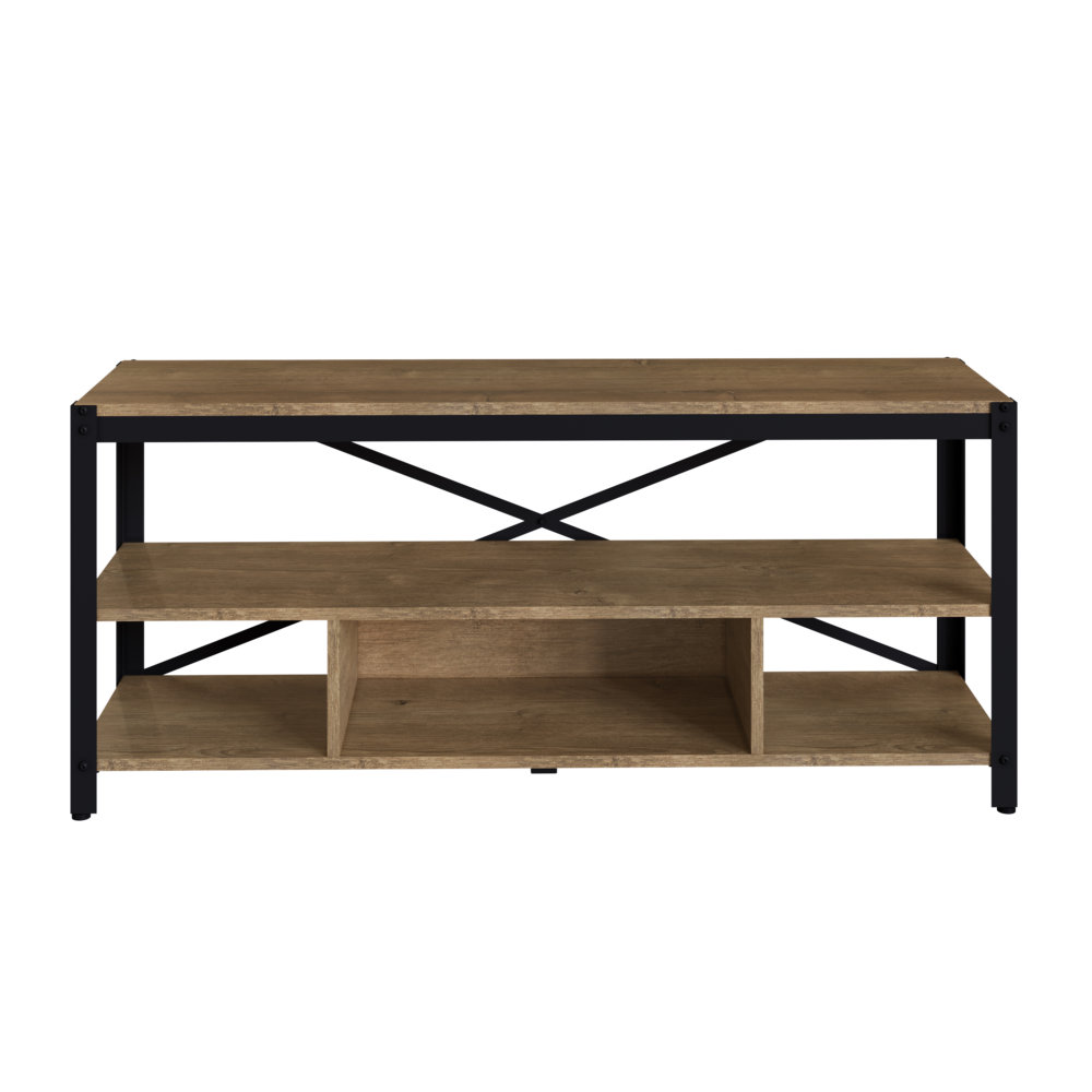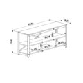 Industrial style TV Stand, with 18mm thick MDP shelves. Rustic style wood. Rack structure in bent sheets 3mm thick and 38mm wide. It has leveling shoes in Polypropylene. Space for 60-inch television.