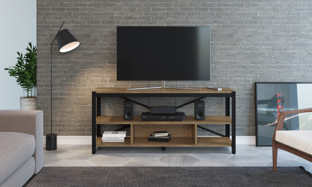Designed with industrial elegance and rigid metal, this TV Stand is suitable for a variety of decoration styles, creating a relaxed and pleasant atmosphere. The shelving areas provide additional space to sort away miscellaneous items in an organized way and display décor or everyday necessities with ease of access. All this, makes the Samuel TV Stand, a transformative addition to any space.