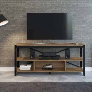 $234.99Designed with industrial elegance and rigid metal, this TV Stand is suitable for a variety of decoration styles, creating a relaxed and pleasant atmosphere. The shelving areas provide additional space to sort away miscellaneous items in an organized way and display décor or everyday necessities with ease of access. All this, makes the Samuel TV Stand, a transformative addition to any space.