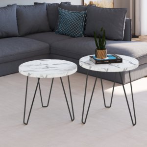$138.99Add life and style to your living room with this 3-piece table set with a modern design that combines and enhances any space. Built with an elegant mix of materials and tones: white wood surfaces and coppery steel frames. Without a doubt, an impressive example of minimalism taken to the highest level of style. -